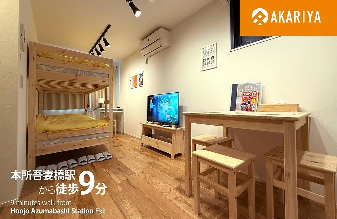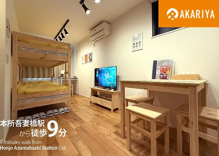Overlooking the street, the 20 m² Akariya Asakusa Tokyo apartment is nearly a 25-minute walk from Kappabashi-dori Street in Tokyo. This 1-bedroom apartment features Wi-Fi throughout the property.